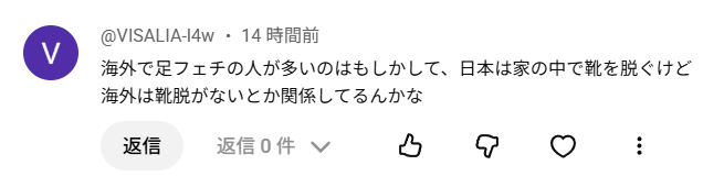 >海外で足フェチの人が多いのはもしかして、日本は家の中で靴を脱ぐけど海外は靴脱がないとか関係してるんかな
