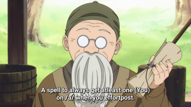 Not hard to imagine because I would be that male character. I think there’d be a comedy scene where Fern stomps on my b**ls though, and then later Frieren tells Fern she would have liked to have that grimoire.