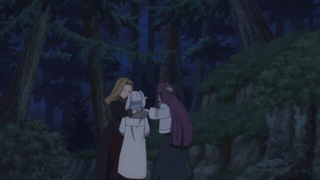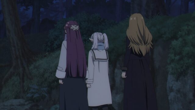 フリーレン、フェルン、メトーデの3人は魔族探索のため森へ、シュタルクとゲナウは村民の遺体をノルム騎士団が引き取るまで村に残ることに。そしてそれぞれに、残忍な魔族たちが近づく。